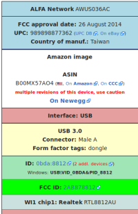 Searching for “Alfa AWUS036AC wikidevi” returns me this page on WikiDevi.